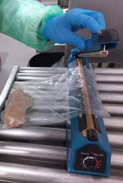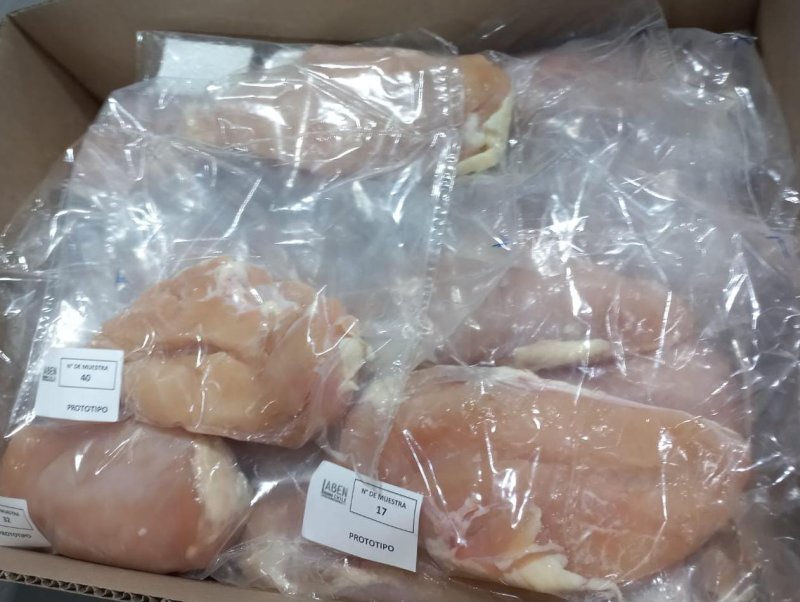 Se realizaron ensayos de envasado de filetes de pechuga de pollo, utilizando los materiales activos previamente seleccionados. Estas pruebas se desarrollaron en la planta de San Rafael (Talca) de la empresa, e incluyeron el traslado de las muestras a dependencias de Laben Chile –Usach mediante su cadena de distribución en Santiago.